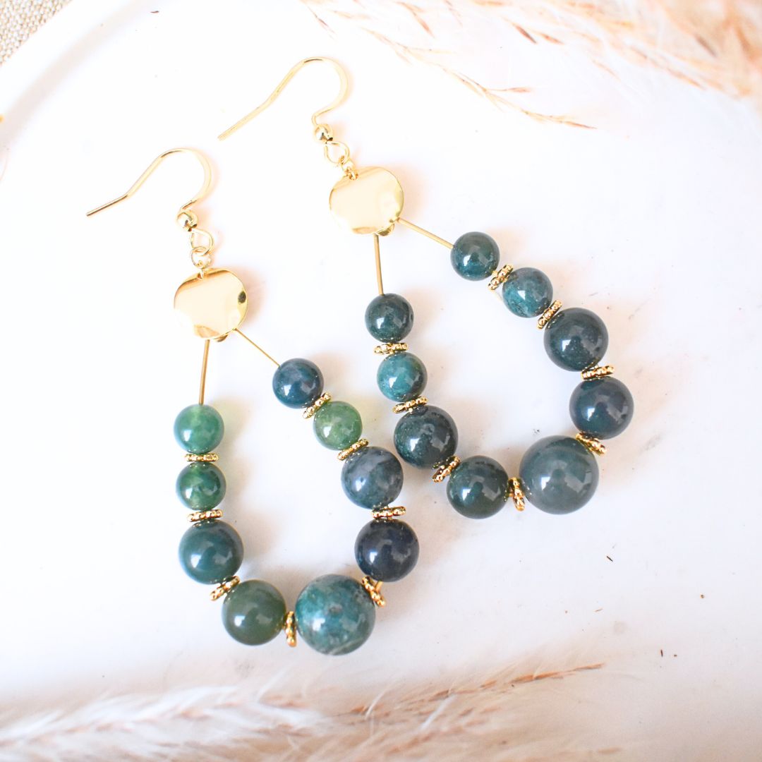 Bienfaits des boucles d’oreilles en Agate Mousse – Modèle Callisto en lithothérapie